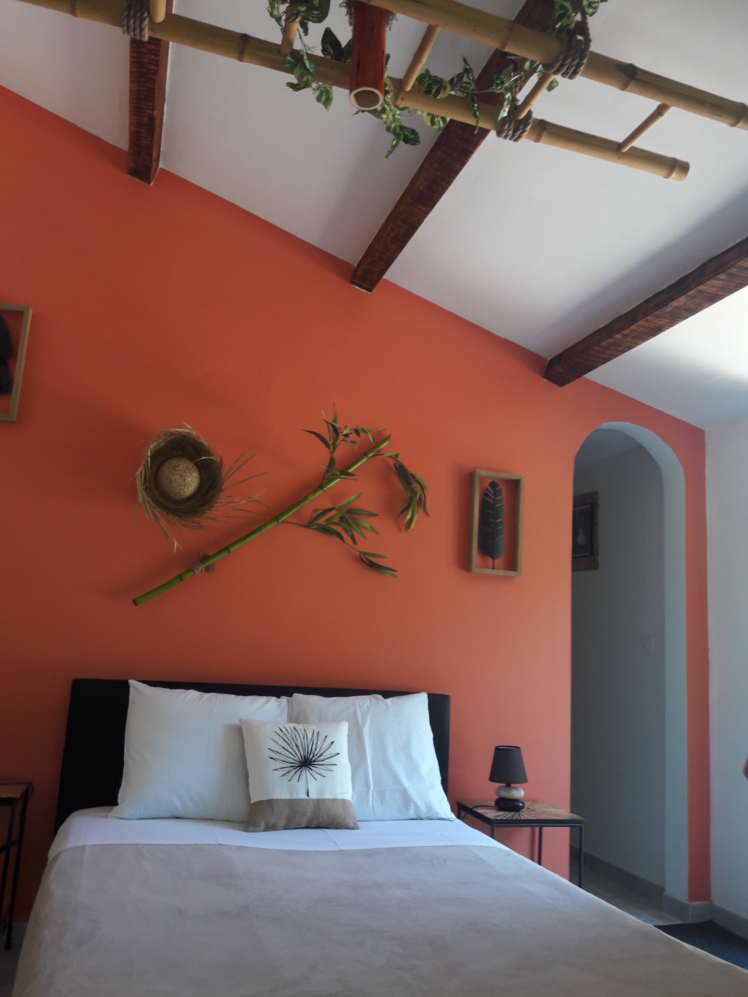 La chambre Fuschia est idéale pour les familles avec une capacité d’accueil de 2 à 4 personnes. Elle est équipée d’un vaste lit de 160 cm, ainsi que d’un lit gigogne pour plus de confort. Vous pourrez profiter d'une vue apaisante sur la piscine et le jardin, créant ainsi un cadre parfait pour vos moments de détente en famille.