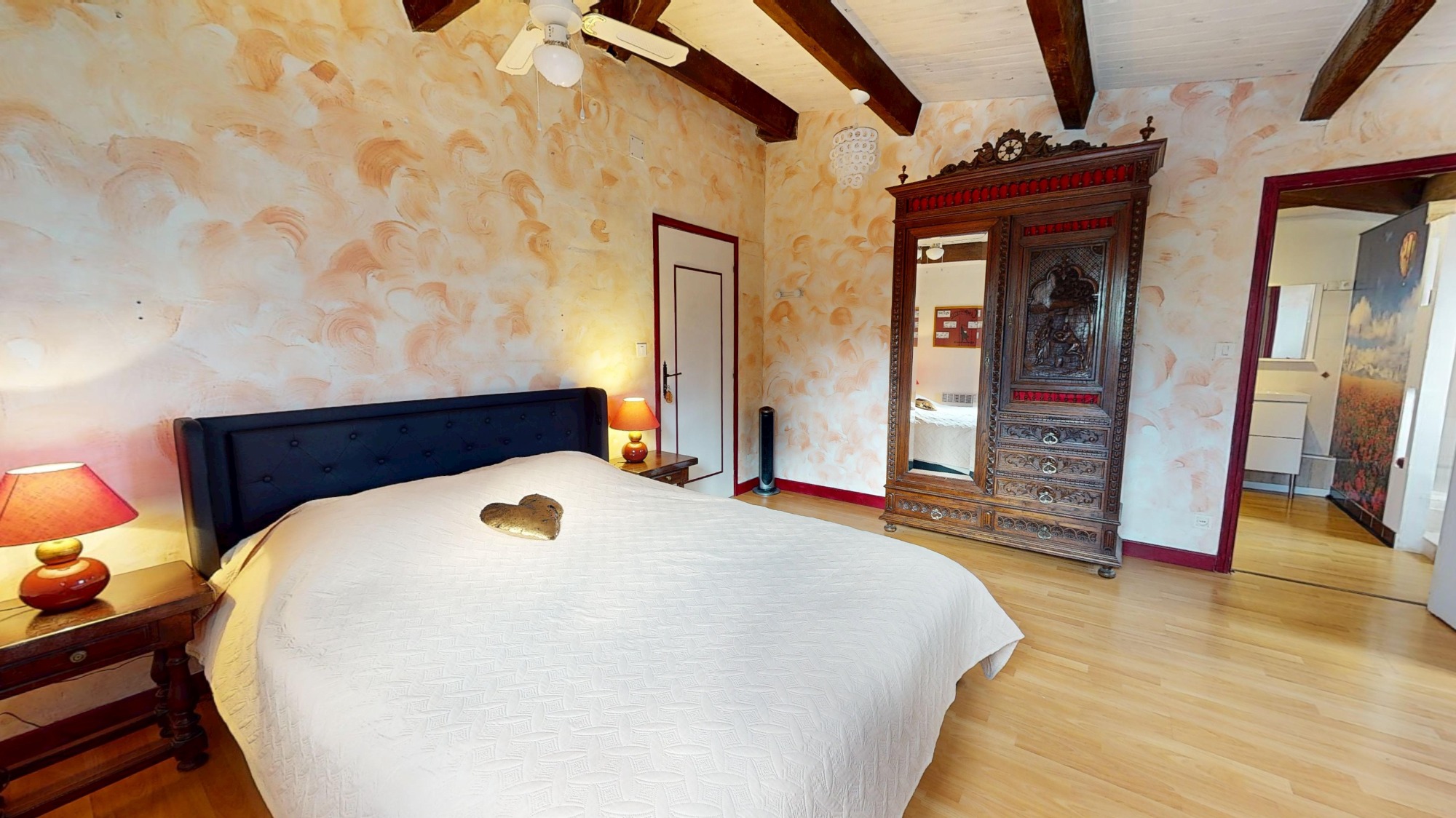 Chambre 1/2 personnes, 1 grand lit 75€