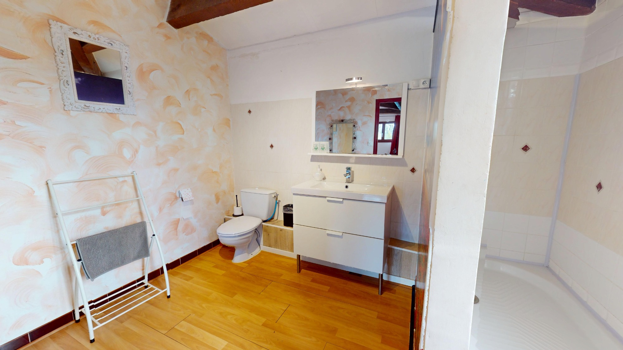 La chambre Dryades vous offre un confort avec sa chambre 2 personnes, équipée d'un lit de 160 cm. Profitez d'un moment de détente dans cet espace intime, doté d'un WC indépendant et d'une vue sur la nature environnante. Cette harmonie entre confort moderne et paysages sereins en fait le lieu idéal pour une escapade romantique ou un séjour reposant.