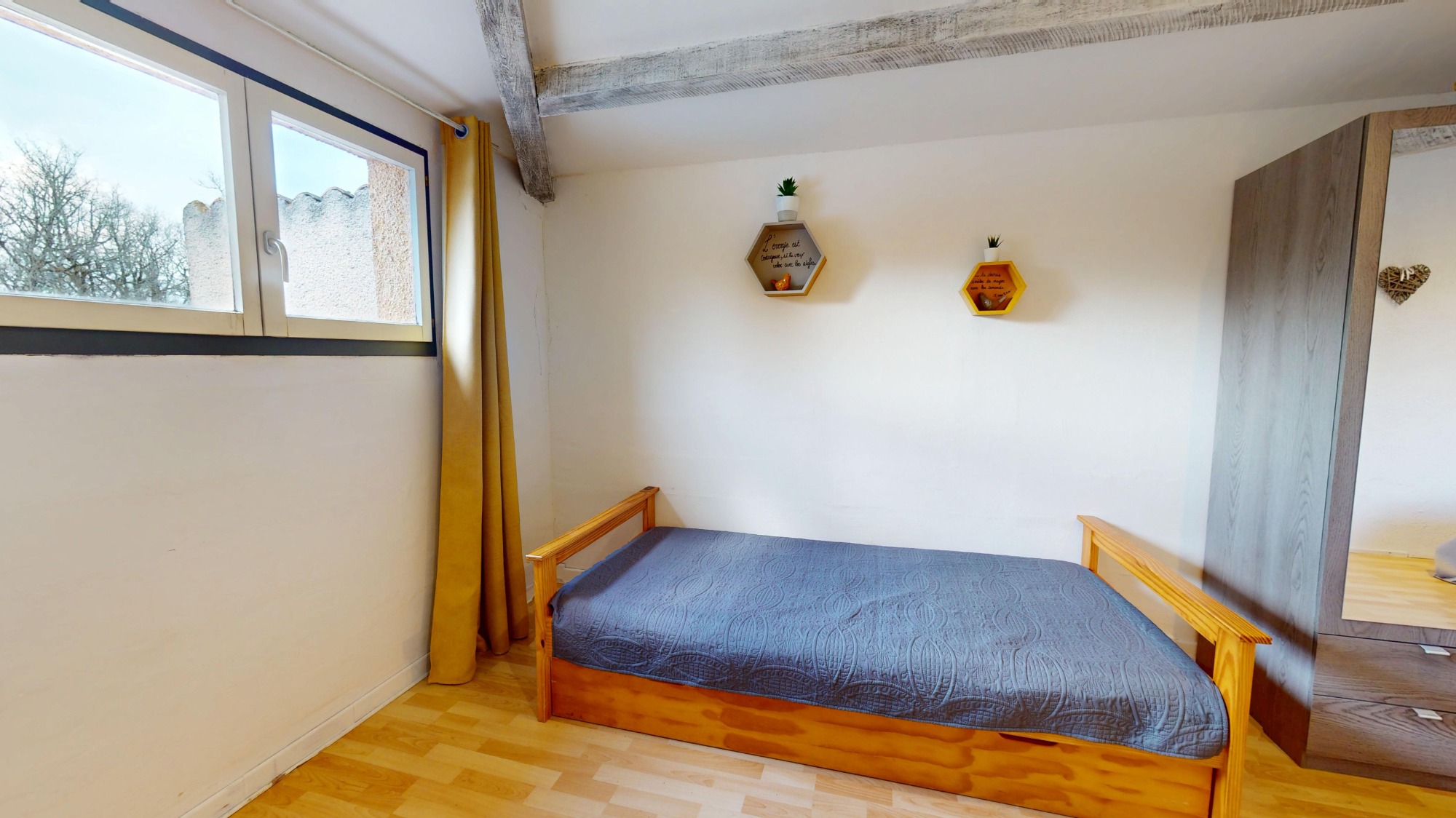 Chambre 1/2 personnes, 1 grand lit 75€ Chambre 2/3 personnes, 1 grand lit et 1 petit lit 95€