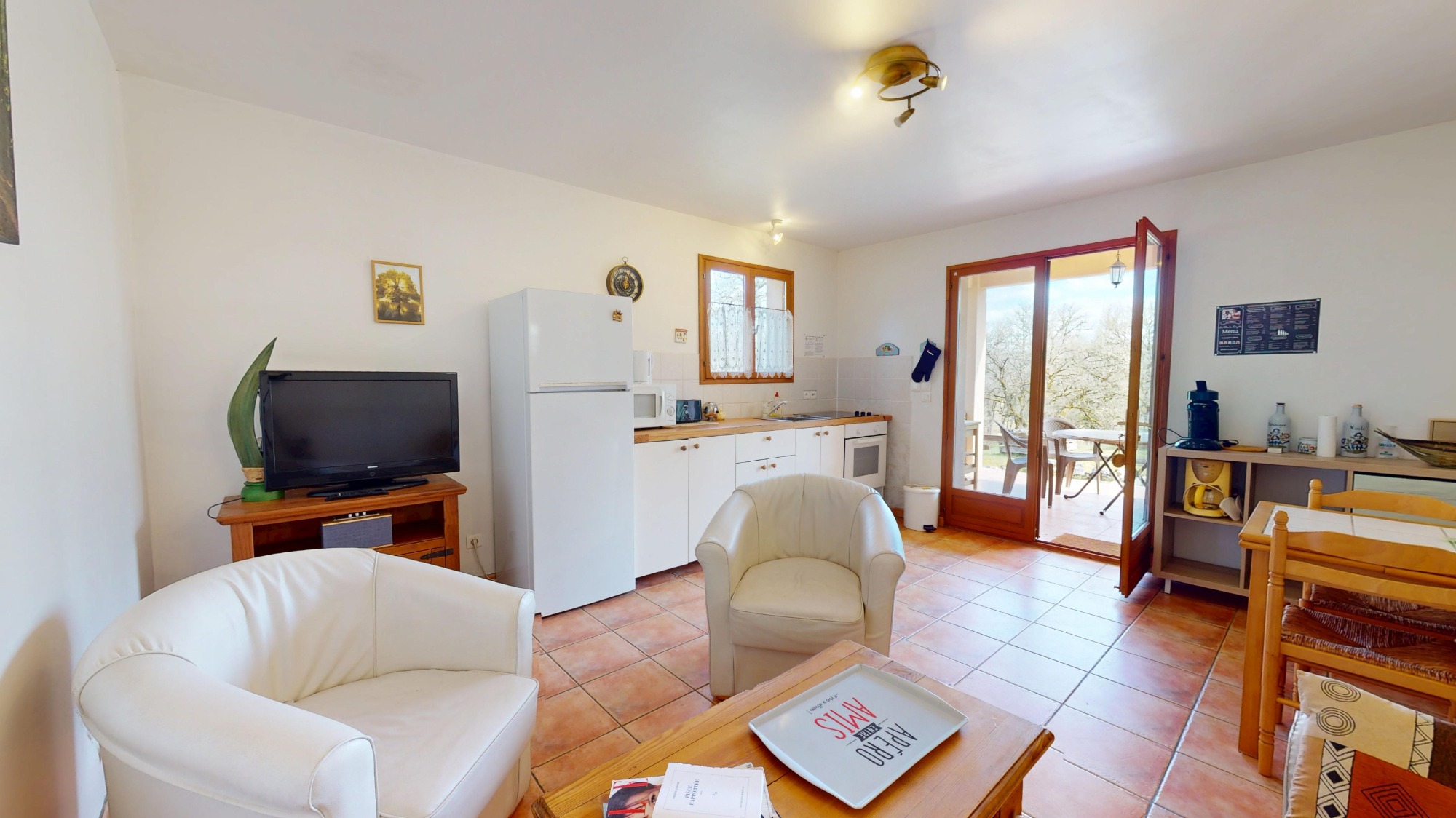 Bienvenue au gîte Yin et Yang, un espace idyllique de 100m² conçu pour votre confort. Ce gîte climatisé dispose de trois chambres spacieuses, parfaites pour accueillir famille et amis. Profitez de deux salles de douche et d'un WC séparé pour plus de praticité. La grande terrasse vous invite à vous détendre en toute tranquillité, offrant un cadre idéal pour vos repas en plein air ou simplement pour savourer un moment de paix. Avec sa cheminée chaleureuse, le gîte Yin et Yang devient un véritable havre de paix tout au long de l'année.